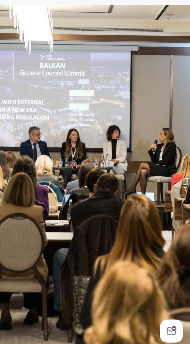 Our Managing Partner Tijana Kojović sat down this week at the Balkan GC Summit with Miša Vorotović, PMI, Sonja Kovač, Heinken, and Elena Tahovska, ProCredit Bank Macedonia, to discuss the evolving dynamic between in-house counsels and external lawyers. Here are the key takeaways on client expectations: